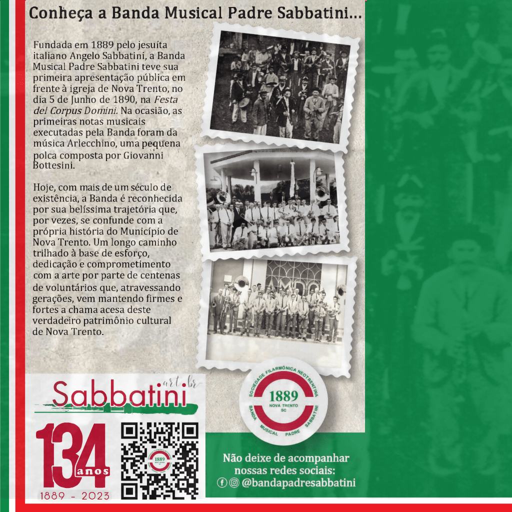 UM POUCO SOBRE NÓS… 26 de novembro de 202327 de novembro de 2023 bandasabbatini Em curtas linhas, um pouquinho sobre a nossa história: Compartilhe isso: Compartilhar no Facebook(abre em nova janela) Facebook Compartilhar no WhatsApp(abre em nova janela) WhatsApp Compartilhar no X(abre em nova janela) 18+ Curtir Carregando... Relacionado Publicado por bandasabbatini Fundada em 26 de setembro de 1889. Ver todos os posts de bandasabbatini