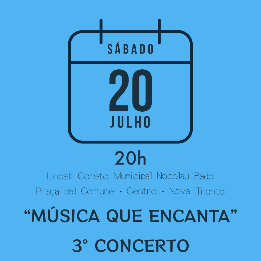 LEI PAULO GUSTAVO – AGENDA DE APRESENTAÇÕES 1 de abril de 202423 de julho de 2024 bandasabbatini Confira abaixo a agenda das 4 apresentações da Sabbatini em contrapartida à Lei Paulo Gustavo. Todos os eventos são gratuitos e você é nosso convidado especial! Saiba mais: LEI PAULO GUSTAVO: SABBATINI É CONTEMPLADA EM NÍVEL ESTADUAL Compartilhe isso: Compartilhar no Facebook(abre em nova janela) Facebook Compartilhar no WhatsApp(abre em nova janela) WhatsApp Compartilhar no X(abre em nova janela) 18+ Curtir Carregando... Relacionado Publicado por bandasabbatini Fundada em 26 de setembro de 1889. Ver todos os posts de bandasabbatini