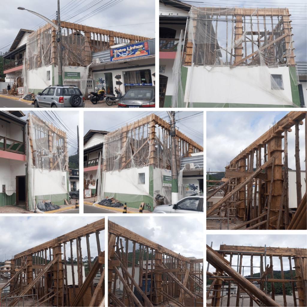Mais abaixo, algumas imagens retratam a grande evolução da reforma da ala antiga da sede da Banda Musical Padre Sabbatini: uma obra totalmente bancada com recursos estaduais, provenientes do Edital Revitaliza SC – PNAB 2024, da Fundação Catarinense de Cultura/FCC.