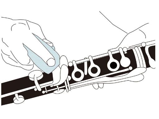 Limpe suavemente toda a extensão do corpo do instrumento com uma flanela para prata, tomando cuidado para não pressionar as chaves, no caso das madeiras.