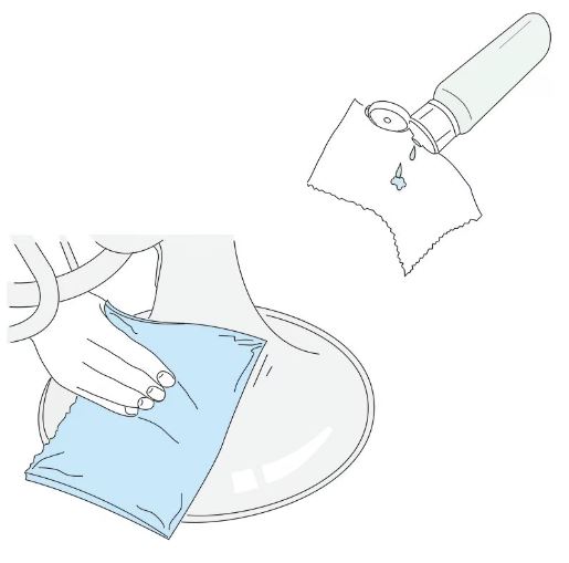 Aplique uma pequena quantidade de lacquer polish uma flanela de polimento. A flanela para laqueado (lacquer cloth) foi desenvolvida especificamente para limpar as superfícies exteriores de instrumentos laqueados/envernizados. Este material de microfibra, quando utilizado em conjunto com o produto lacquer polish, traz como resultado um polimento eficaz e ao mesmo tempo remove impressões digitais e sujeira. Também deixa um revestimento de silicone no instrumento que repele sujeira e outros contaminantes.