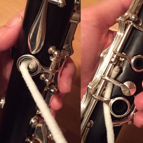Nos clarinetes, utilize uma haste de Tone Hole Cleaner para limpar as partes de difícil acesso, como a parte inferior das chaves e também as áreas entre as chaves. Qualquer acúmulo de sujeira prejudica o bom funcionamento das sapatilhas e mecanismos. Com o tempo, se o instrumento não receber os cuidados necessários, acabará por exigir a intervenção de um especialista (e elevados gastos com manutenção).